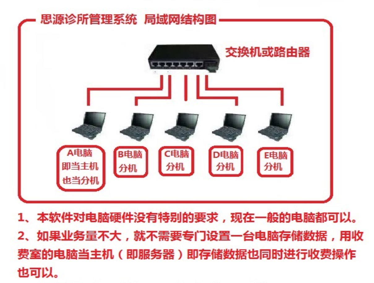 一台就是单机使用,两台就可以联网使用,联网使用时,就和医院的模式一样,数据是相通的。医生开的处方,收费处就可以看到。